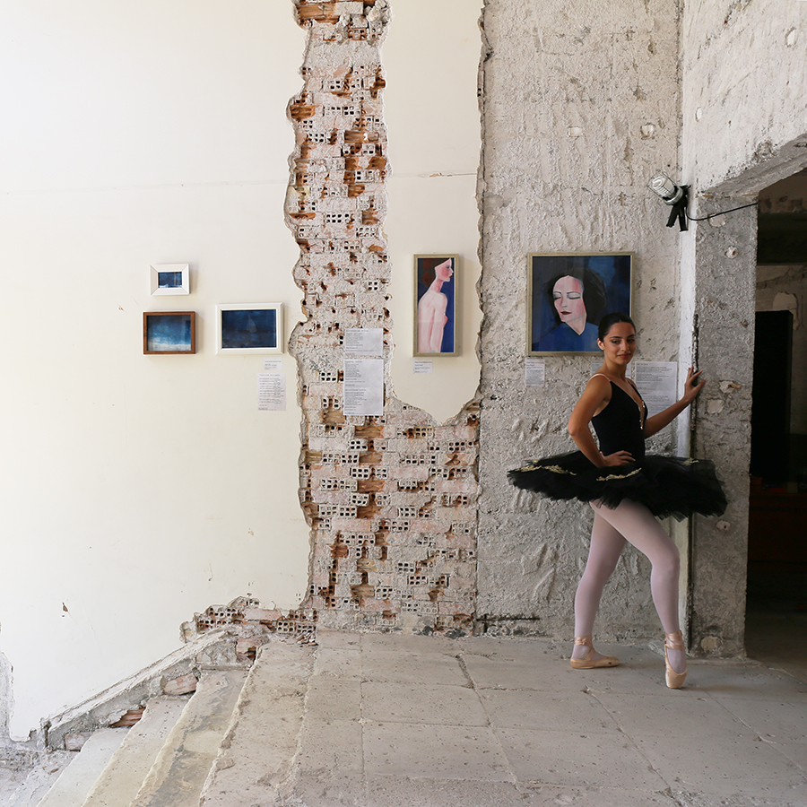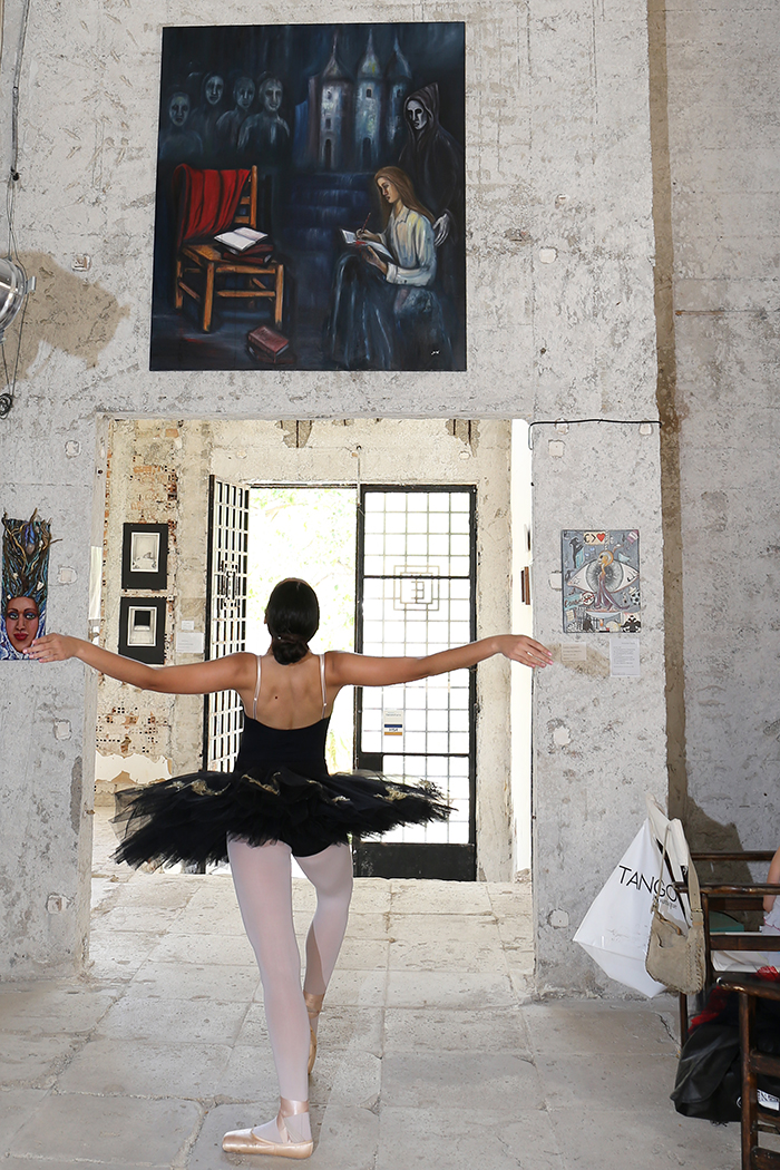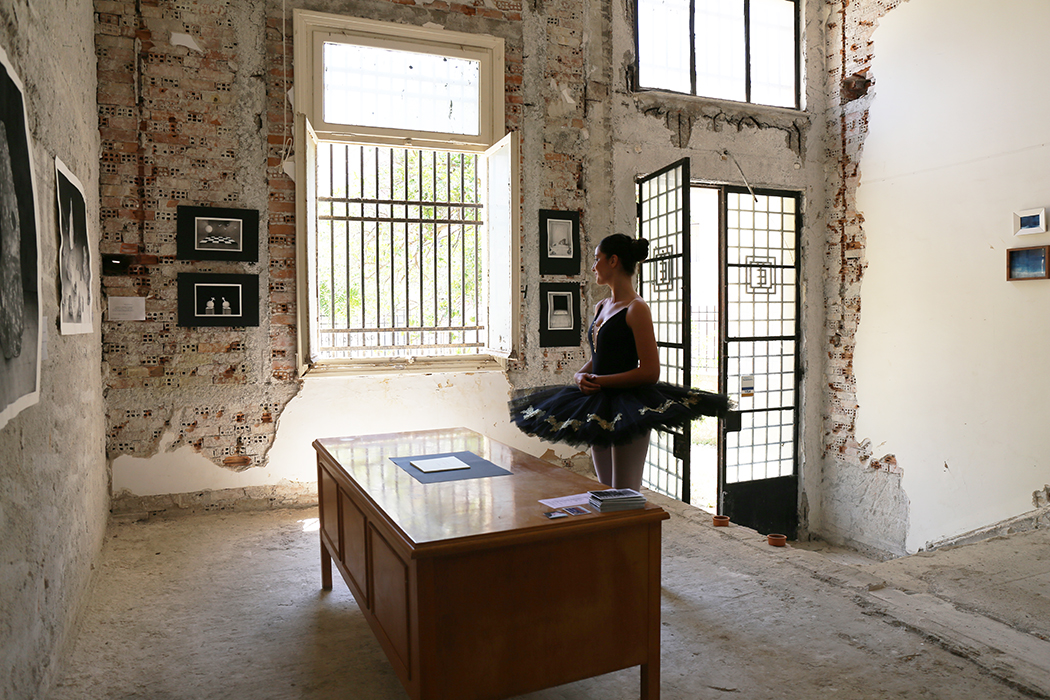 The many pictures (photographed by me) posted here show the amazing, abandoned space of the old bank, the preparation of our exhibition, including moments of the hanging and unhanging of our work, our posters and pamphlets, the opening night, concerts of classical and jazz music, and of greek poetry set to music, as well as a photo shoot of a ballet school of our town (Xorokinisi)!
