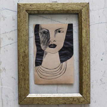 Woman Ink Portrait on Brown Paper