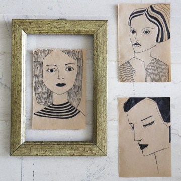 Girl Ink Drawing on Brown Paper